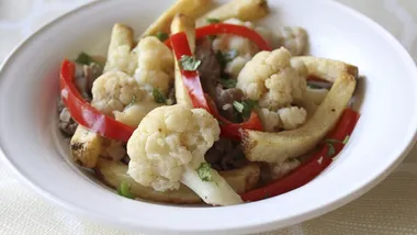 Add the cauliflower and vegetable broth. Cook over low heat for 25 minutes.