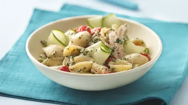 Pesto is a sauce made of fresh basil, garlic, oil, pine nuts and grated cheese. A variety of pesto flavors is now available, and you may want to experiment with one of them in this recipe.
