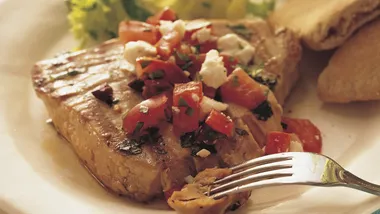 Cover and grill fish over medium heat 10 to 13 minutes, turning fish after 5 minutes, until fish flakes easily with fork. Serve with Citrus-Olive Butter.