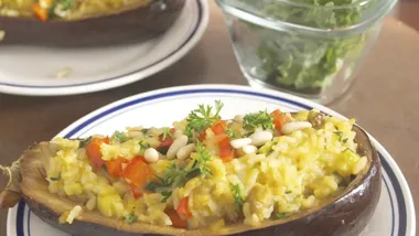 Heat gas or charcoal grill. Brush eggplant, squash and zucchini slices with oil on both sides. Place on grill over medium heat. Cover grill; cook for 8 to 10 minutes or until tender. Remove vegetables from grill; brush on both sides with 2 tablespoons of the vinaigrette.