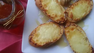 Distribute this mixture over the toast or crackers. Place them on one or several dishes.