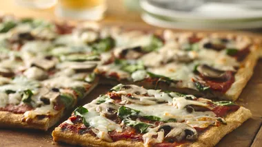 Turn this into a vegetarian pizza by replacing the ham with artichoke hearts, hearts of palm or asparagus.