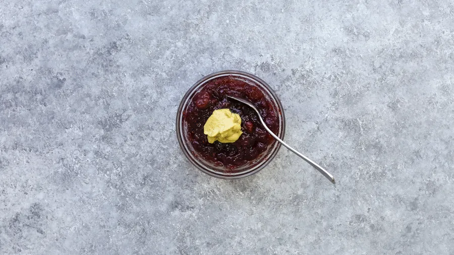 In small microwave-safe bowl, combine jelly and mustard. Microwave on HIGH for 1 to 2 minutes or until jelly melts. Stir to combine. Brush 3 to 4 tablespoons jelly mixture over kabobs.