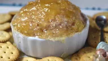 Mix the chopped cheese, ham and pineapple in a medium jar.
