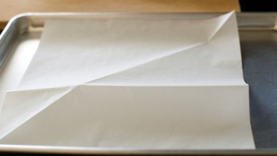 Cut a piece of parchment paper to fit in your baking dish.