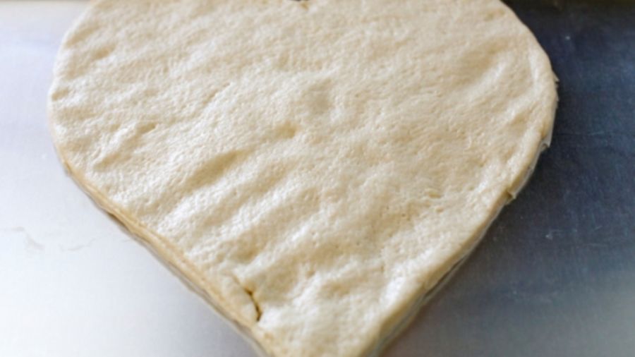 Place the heart shaped dough in the baking dish. Bake for 8 minutes.