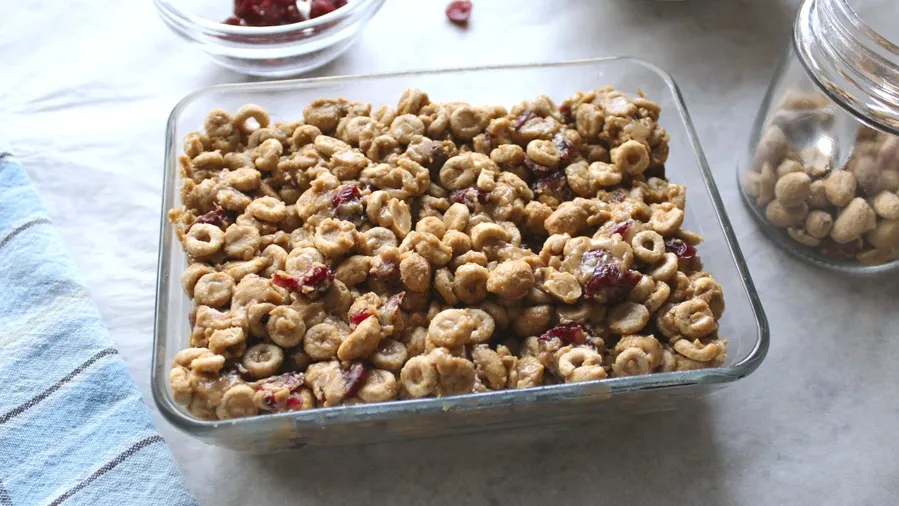 In a bowl, mix the Cheerios™, cranberries and peanuts.