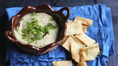 • For those days when you get together with family and friends to watch football, I invite you to please your guests with delicious homemade pita chips. My family loves them! They’re a delicious addiction and much fresher than any other kind of chips you can buy. And it only takes 5 minutes to make them. To go with the pita chips, we make homemade hummus. For those of you who are not too familiar with its preparation, it’s a traditional Arab chickpea cream recipe that is very widely used in the Western Hemisphere today. Although it might seem easier to buy it already made, making it at home isn’t complicated and, of course, it will have a fresher and more intense flavor. It’s original, colorful, fun and delicious - a good option to offer your friends, children and guests.