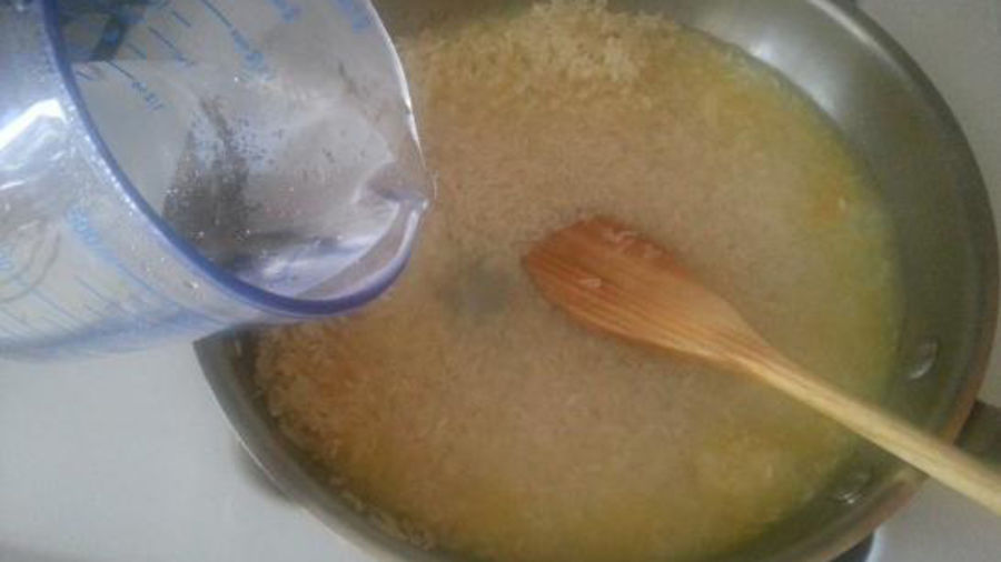 Add sea salt and rice, and stir well with a wooden spoon.