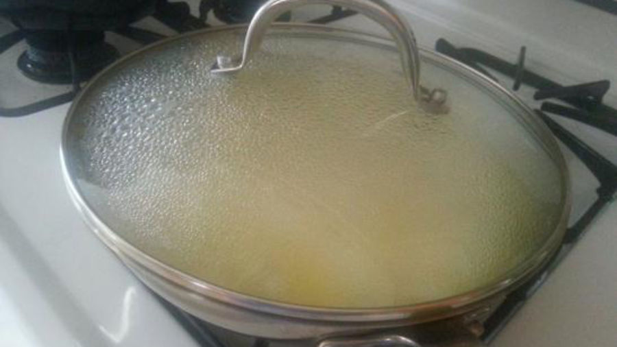 Add the hot water, lower heat and cover.