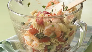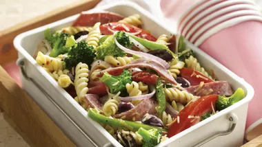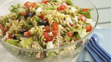 Toss a zesty Italian yogurt dressing with tomatoes, zucchini and pasta for a colorful and delicious salad.