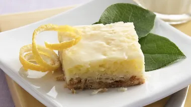 Carefully spread frosting over filling. Sprinkle with coconut and lime peel. Cover; refrigerate 30 minutes. For bars, cut into 6 rows by 4 rows. Store covered in refrigerator.