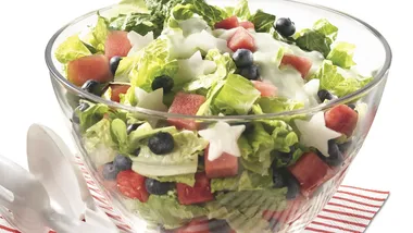 In medium glass or plastic bowl, toss ingredients.