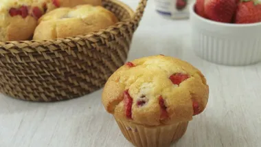 Valentine's Day, the international day of love, is drawing near. Today I want to share with you a helpful idea that makes for a tasty Valentine's Day breakfast or afterschool snack for your kids. Pancake mix is easy to use to whip up a variety of different pancake-based goodies. This time, my pancakes have taken on the form of a muffin, to which I've added fresh strawberries and Lucky Charms™. Let your kids help with this family breakfast recipe and you'll see how much they enjoy being a part of the preparation process. These baked pancakes, in addition to being a super fun option, are sure to be a hit with everyone in the family.