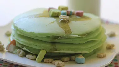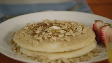 Prepare the pancakes in the desired size on a large skillet. Serve with maple syrup or pancake syrup.