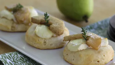Remove from the oven and fill the hole of each biscuit with 1/2 teaspoon mandarin sauce, a slice of Brie cheese, a slice of mandarin and sprinkle with nuts. Put it back in the oven for 5 minutes or until cheese melts.