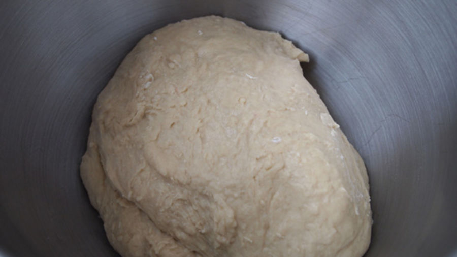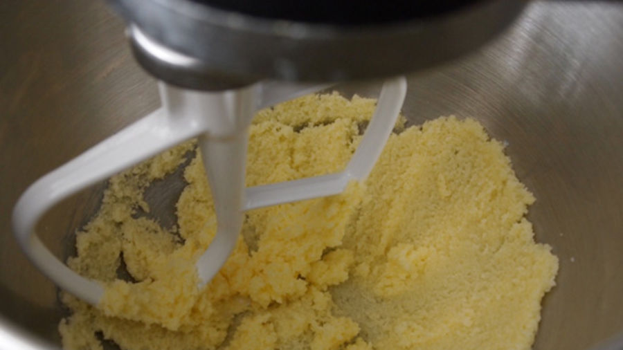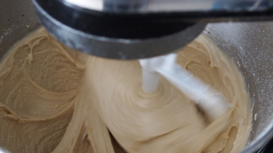 Use the paddle attachment on your stand mixer to whip the butter and sugar. Add the egg and vanilla. When the mixture is creamy, add the fermented dough at low speed.