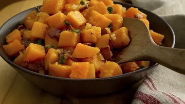 - Use a potato peeler to peel yam and squash - peel away from yourself. - Baking sheets should have sides. - If unable to locate a delicate squash, another firm squash could be substituted such as butternut or acorn.