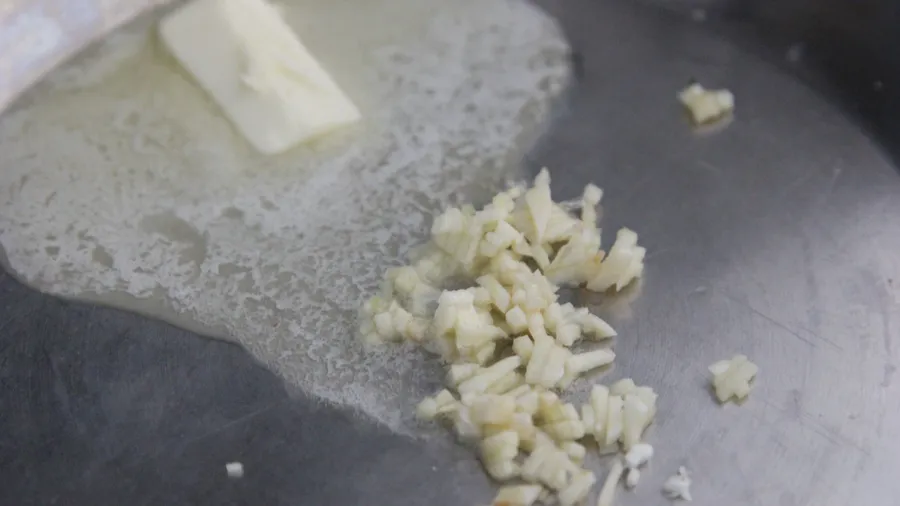 Fry the garlic in the butter until it’s golden brown. This will only take a few seconds.
