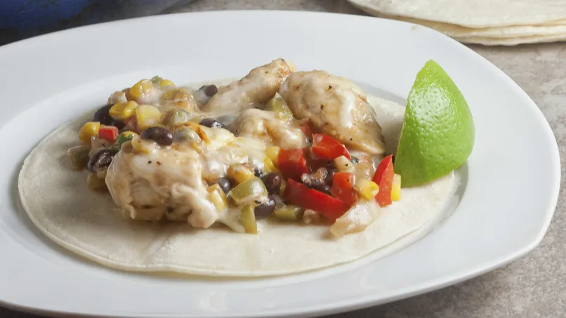 Return cooked vegetables to skillet. Stir in beans, tomatoes, lime juice and water. Cook 10 minutes or until juice of chicken is clear when center of thickest part is cut (at least 165° F).