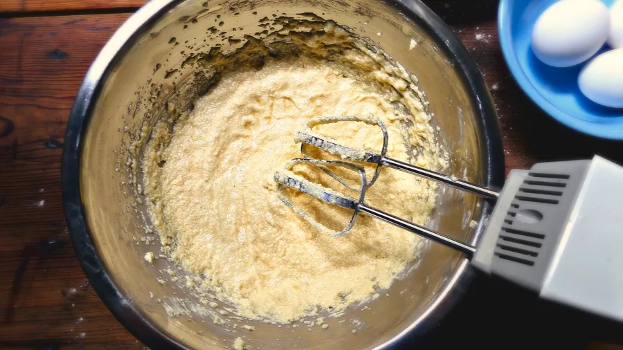 Whip the butter and sugar with a mixer on medium speed until the mixture is soft and creamy.