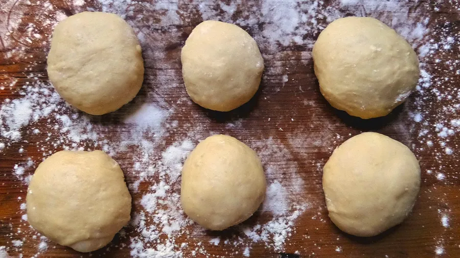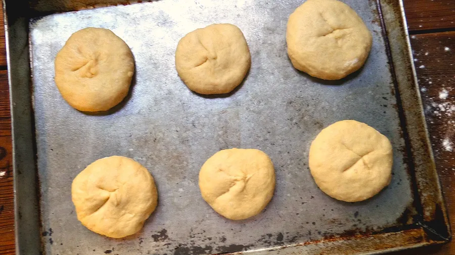 Arrange the dough balls on a lightly greased baking tray. Flatten the balls of dough slightly with your fingers. Cut an “X” in the center of each piece of bread.