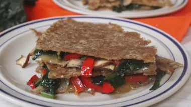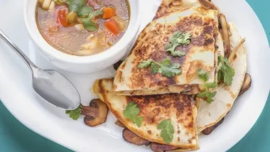Heat a comal or grill pan over medium heat. Heat 2 tortillas. Flip and cover with a thin layer of cheese, 1/4 of the mushroom filling, and another top layer of cheese. Cover with another tortilla.