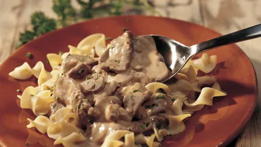 Enjoy this delicious beef and onion stroganoff that’s made using Hamburger Helper® stroganoff – perfect for a French-style dinner.