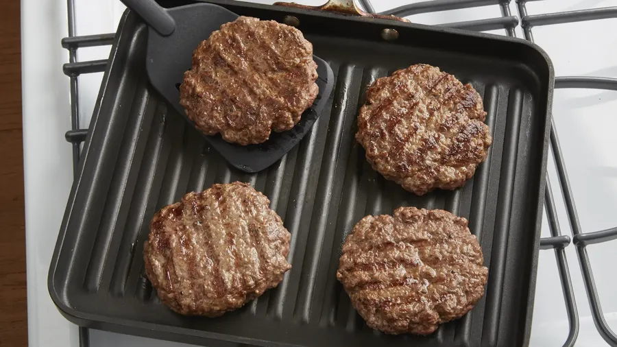 Cover the hot patties with the cheese slices so that they melt with the heat.