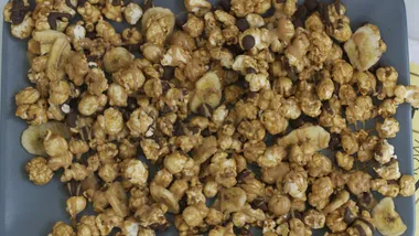 Place popped popcorn in a large bowl. Add marshmallow mixture on first step, and toss with two wooden spoons to coat well.