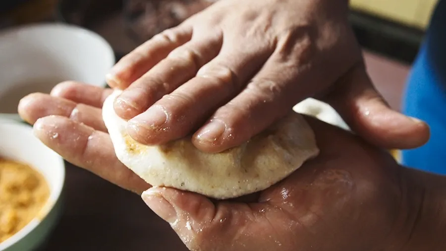 Keep patting to make a new tortilla. If you need to, moisten your hands slightly so the mix is less sticky.