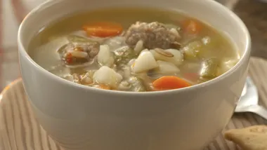 In a large pot over medium-high heat, add the broth, meatballs, beans, tomatoes, mixed vegetables and cabbage. Bring to a boil. Cover and let cook for 5-8 minutes. If you’re using raw meatballs, cook until thoroughly cooked.