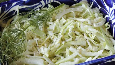 To the drained cabbage add carrots, scallions, jicama, puree from blender, and cilantro; toss to coat.