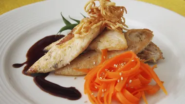 Before serving, add a little sesame oil and sprinkle with toasted sesame seeds.
