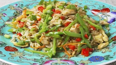 For a vegetarian version, leave out the chicken and add more vegetables like broccoli, cauliflower, etc.