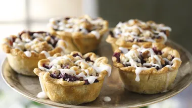 • Fill an easy refrigerated pie crust with sweet and tangy rhubarb and blueberries.
