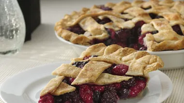 Fill an easy refrigerated pie crust with sweet and tangy rhubarb and blueberries.
