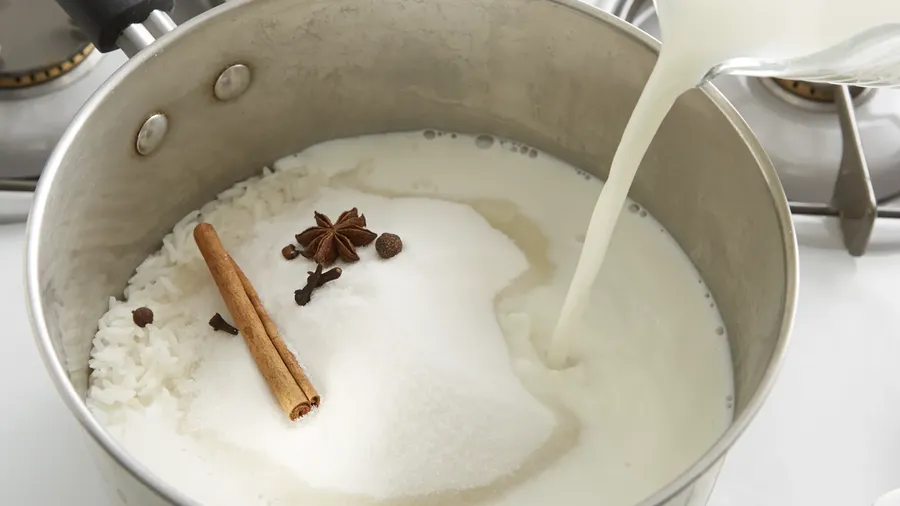 Reduce heat and add the sugar, all spices and peppers, and 1 cup of milk. Cook slowly, stirring constantly, until the rice has absorbed all the liquid.