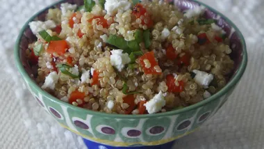 • 2/3 cup roasted red bell peppers (from 15-oz jar), drained, patted dry with paper towel and cut into 1/2-inch pieces