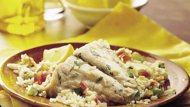 • Steaming or broiling fish is recommended in order to cut down the amount of fats in our meals. This time I made it in a frying pan with a little bit of oil and some sautéed vegetables. This way all the flavors come together and the result is sabroso. I like to serve it over a bed of white rice or potatoes. Try it!