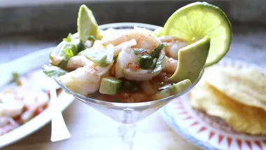 • Summer is in full swing; days spent relaxing by the pool, playing with the kids at the park or hosting fun summer parties. When hosting a summer fiesta, I like to serve a tray of cold appetizers, because no one really likes to crank up the stove on a hot summer day. This is why I like to serve ceviche: shrimp soaked in citrus juice until tenderly cooked topped off with crisp vegetables and a bit of jalapeño for heat. Tuck your serving glasses in the fridge until ready to serve to keep your ceviche nice and cold for your guests. Along with a few tortilla chips and a cold beer, your fiesta is sure to be a hit.