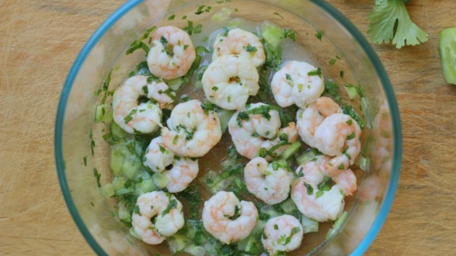 Once it has been marinated, remove the liquid and cook the shrimp in a pan for no more than 5 minutes.