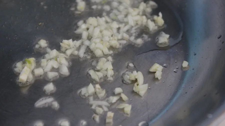 Heat up the oil in a pan and fry the garlic until it gets brown. This will only take a few seconds.