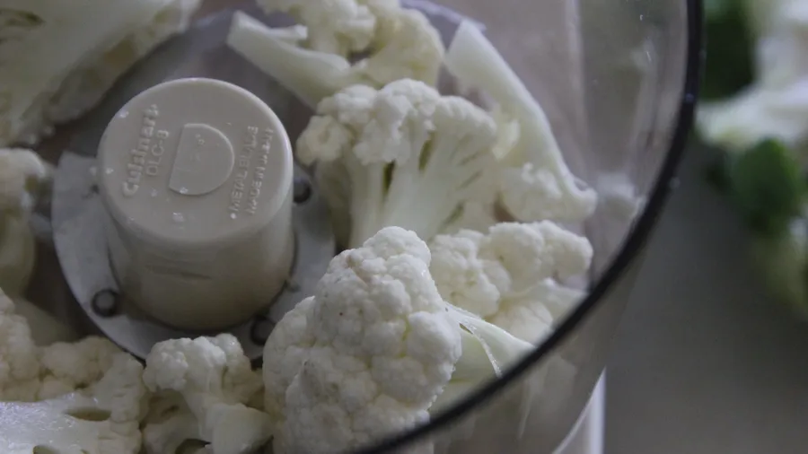 If you want to save some time, buy the cauliflower clean and chopped. Just add them into the food processor.