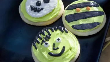 Divide frosting among 3 small microwavable bowls. Heat frosting as needed: microwave 1 bowl uncovered on High about 10 seconds until frosting can be stirred smooth. If frosting becomes too firm while decorating, microwave on High an additional 5 seconds; stir.