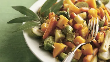 Bake 40 minutes. Meanwhile, mix bread crumbs and 3 tablespoons melted butter. Remove foil. Use spoon to press down on vegetables to moisten evenly; sprinkle with crumb mixture. Bake uncovered 25 to 30 minutes longer or until vegetables are tender. Let stand 5 minutes before serving.