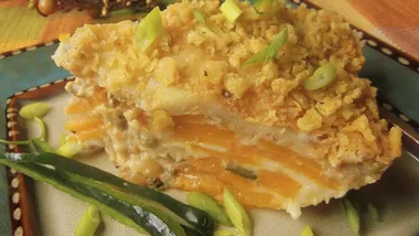 Heat oven to 350°F. Spray 8-inch square (2-quart) glass baking dish with cooking spray.