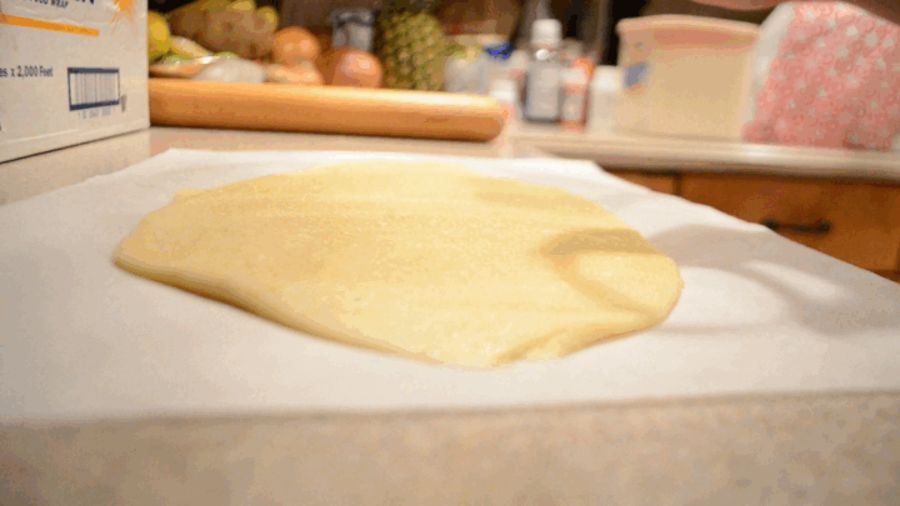 Sprinkle flour on wax paper to avoid sticking, and use a rolling pin to flatten the dough out.