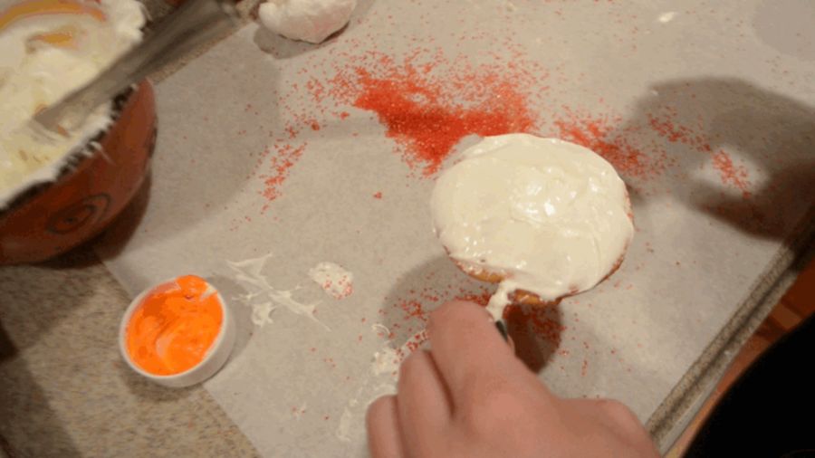 Let cool for 10 minutes, and then add a thick layer of frosting.