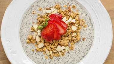 This strawberry chia jam gives yogurt a creamy touch similar to pudding but without all the guilt.